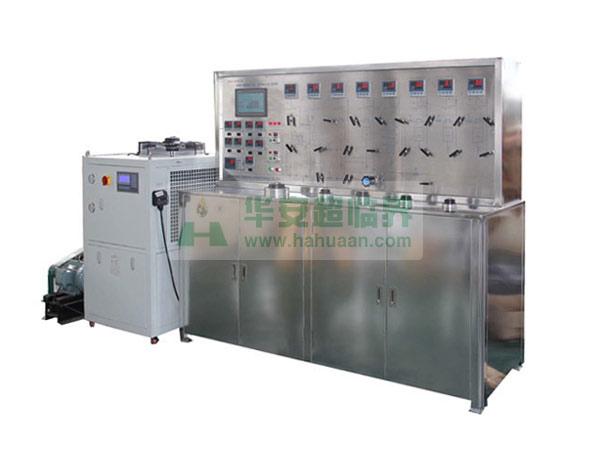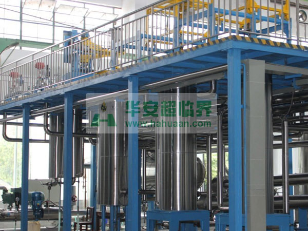 該裝置采用CO2作添加劑,主要應(yīng)用:食品、醫(yī)藥、香精、香料等有效成份的提取,精細(xì)分離。裝置由萃取釜、分離釜、精餾柱、CO2泵等組成:萃取釜為0.5-50L/32-50Mpa固液兩用,CO2循環(huán)使用。接觸流體的容器、閥門、管路采用1Cr18Ni9Ti不銹鋼制作。