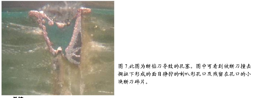 1.依據試驗結果,而不是以傳統的師傅帶徒弟式的經驗確認合理的鉆孔參數(如下刀太快則容易孔塞);