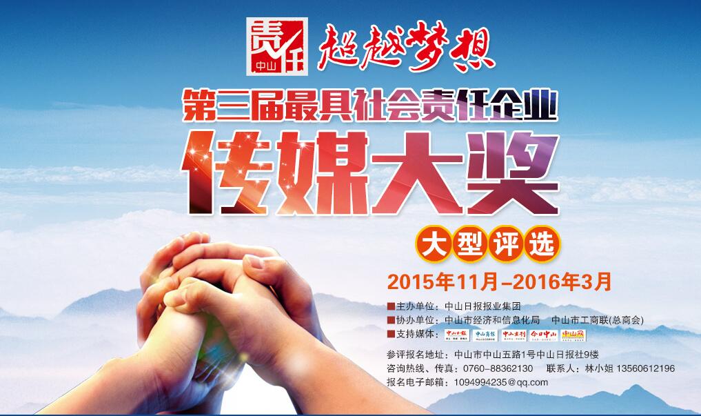 “超越夢想·三屆具社會責任企業傳媒大獎”由中山日報報業集團主辦,市經信局、市工商聯(總商會)協辦,以廣東省社科院、中山市經濟研究院作為智囊機構。自去年12月啟動以來,活動得到了企業的積極響應,終共有近百家企業報名,經過初步篩選,共有75家企業入圍。本次傳媒大獎共設置綜合獎 “具社會責任感傳媒大獎”,單項獎——“具品牌價值企業傳媒大獎”、“具慈善精神企業傳媒大獎”、“具創新能力企業傳媒大獎”、“佳環保綠色企業傳媒大獎”。中山日報報業集團副社長、總經理劉廷玉表示,傳媒大獎進行到三屆,已深切地感受到企業對社會責任越來越重視,報名越來越踴躍,企業的參評材料也越來越規范,這表明中山企業的社會責任意識逐漸增強。