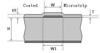 其中TOP層有單線阻抗要求,參考層為2層,其中單線阻抗線寬W1要求12.0MIL,阻抗要求50±5%Ω(50±2.5Ω),其結構如下: