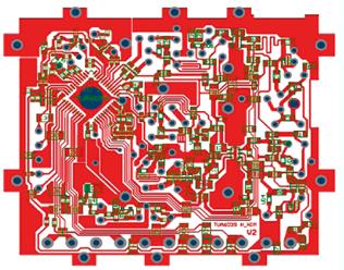 采用單層PCB設計ULC調諧器已廣為客戶接受。在競爭激烈的電視調諧器市場中,任何成本上的改進都可能進一步降低生產成本。因此,單層PCB與雙層PCB之間的任何成本差異對于調諧器的整體BOM(材料清單)來說都非常重要。圖2為終的PCB設計。該half NIM設計使用厚度1.6mm的單面FR4 PCB。