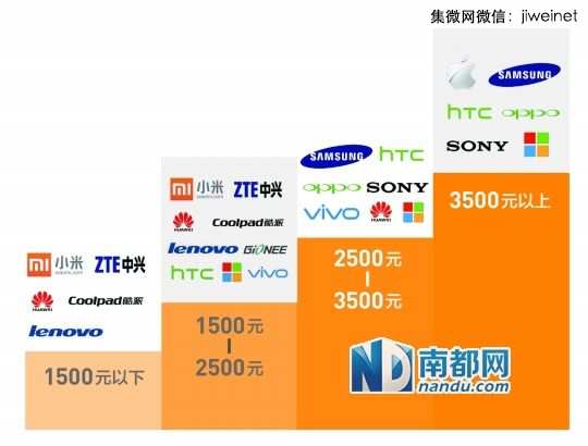 中市場各價位段主力品牌分布