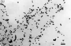 (3) 通過用不同的還原劑和加入適當的分散劑:用硼氫化鉀做還原劑,其得到的粒徑小,粒徑大小均一;在分散劑PAAS的條件下,納米銀呈現出好的分散性,無團聚現象。